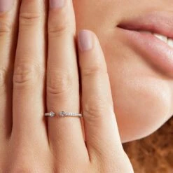 Bague, en argent véritable, montée d’une fleur d’oxyde de zirconium dont le pourtour est réalisé avec un fin graineti