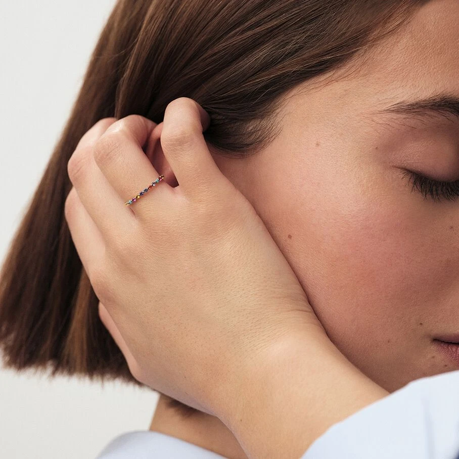 Bague, en argent plaqué or, sur laquelle ont été sertis clos une série d’oxydes de zirconium