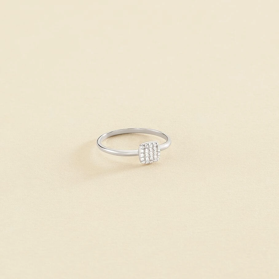Bague fine, en argent véritable, avec un ornement de forme coussin et pavé d’oxydes de zirconium