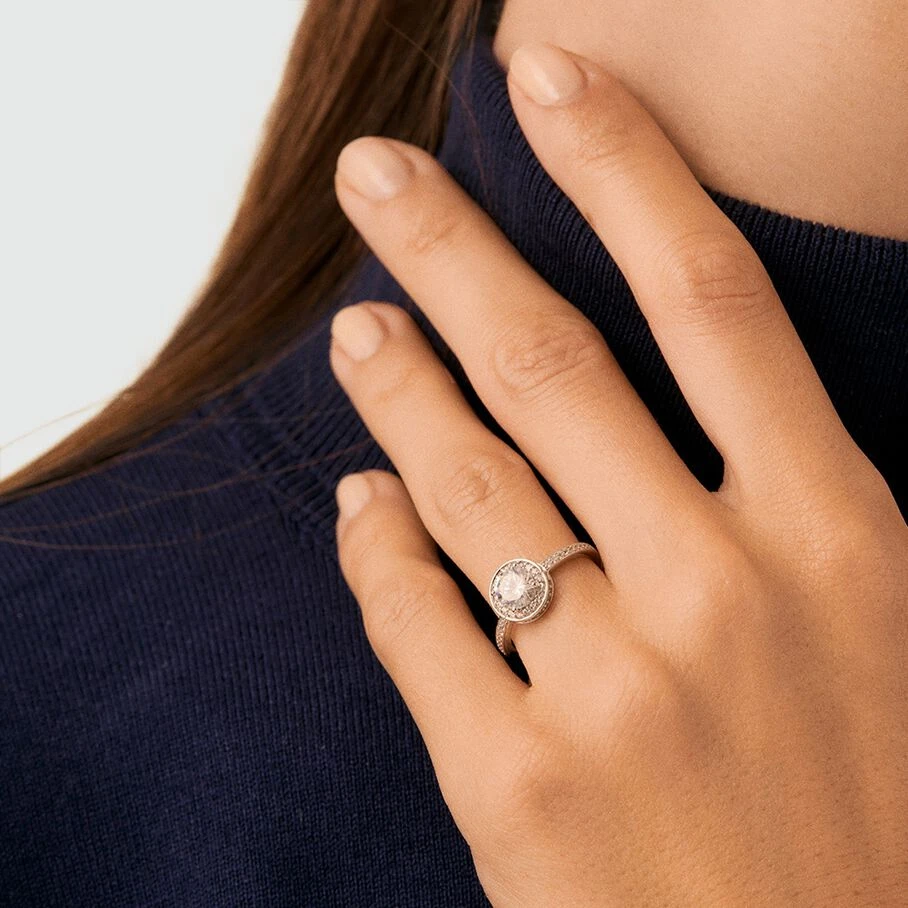 Bague solitaire en argent véritable orné d’un oxyde de zirconium XL rond entouré de mini-oxydes de zirconium