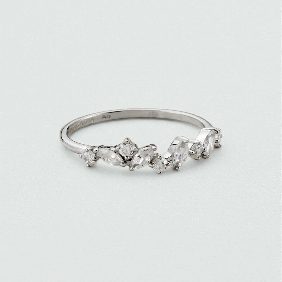 Bague fine, en argent véritable, sertie d’oxydes de zirconium et d’oxydes de forme marquise