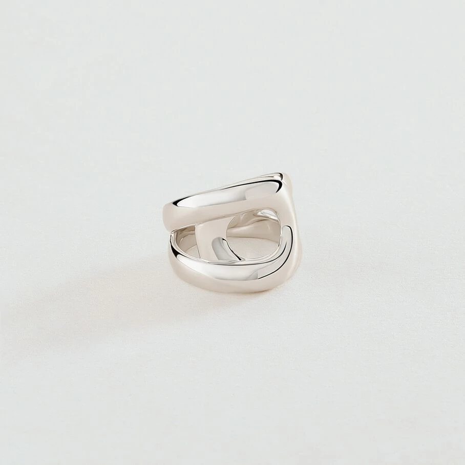 Bague large en argent véritable formée de deux fils arrondis superposés