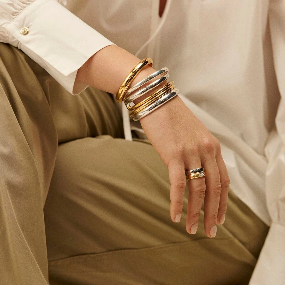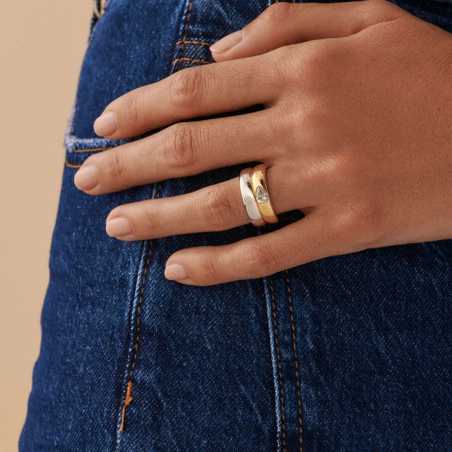 Deux joncs, en argent véritable et argent véritable doré 750/1000, dont l’un avec un oxyde de zirconium serti dans le corps de bague