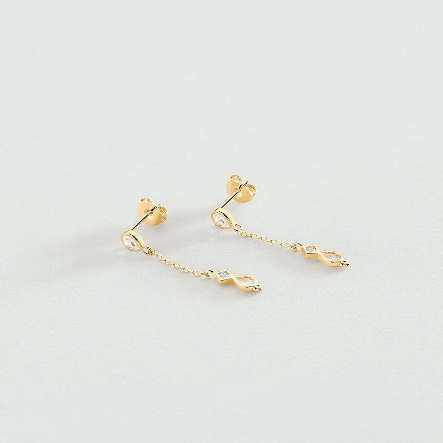 Boucles d’oreilles en laiton doré 750/1000, chaine et oxydes de zirconium