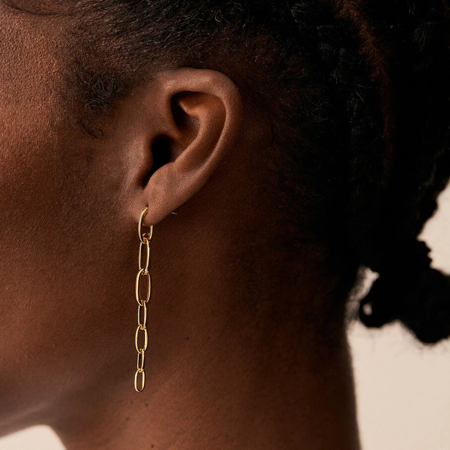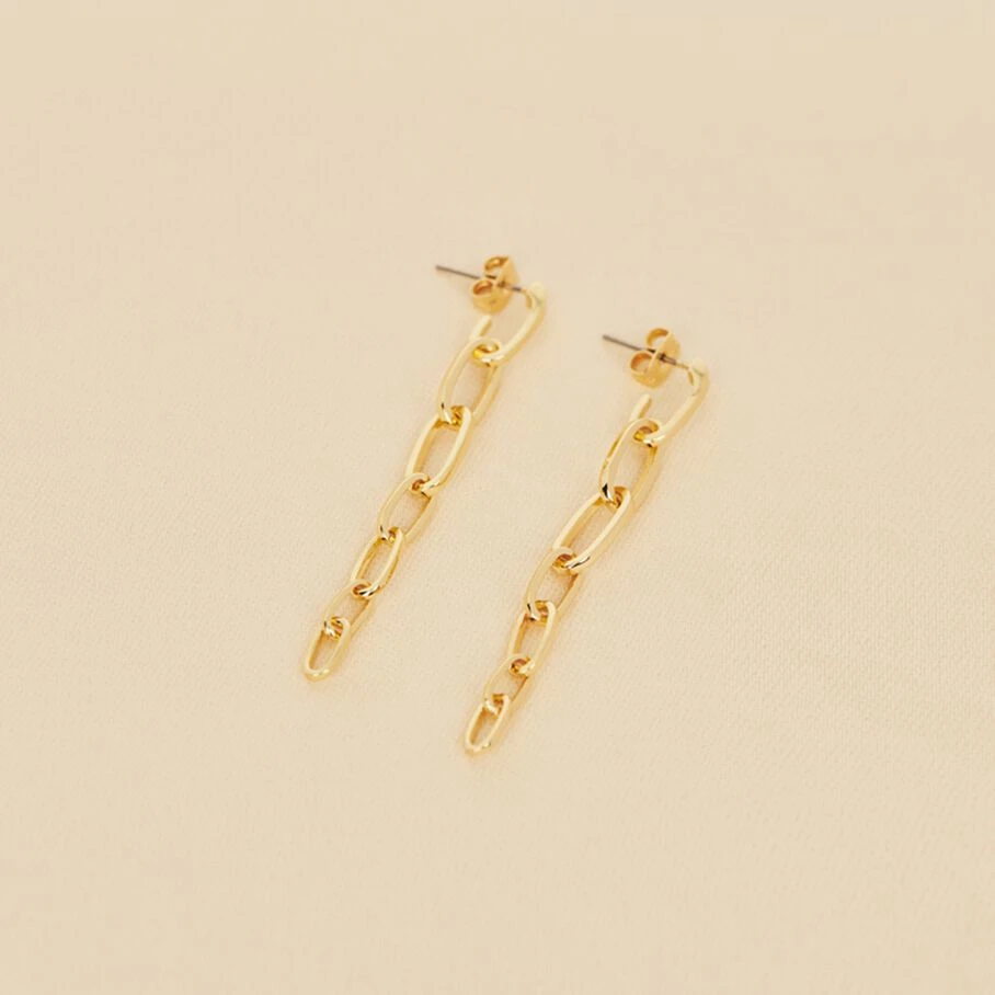Boucles d’oreilles linéaires, en laiton doré 750/1000, faites de maillons allongés et ovales