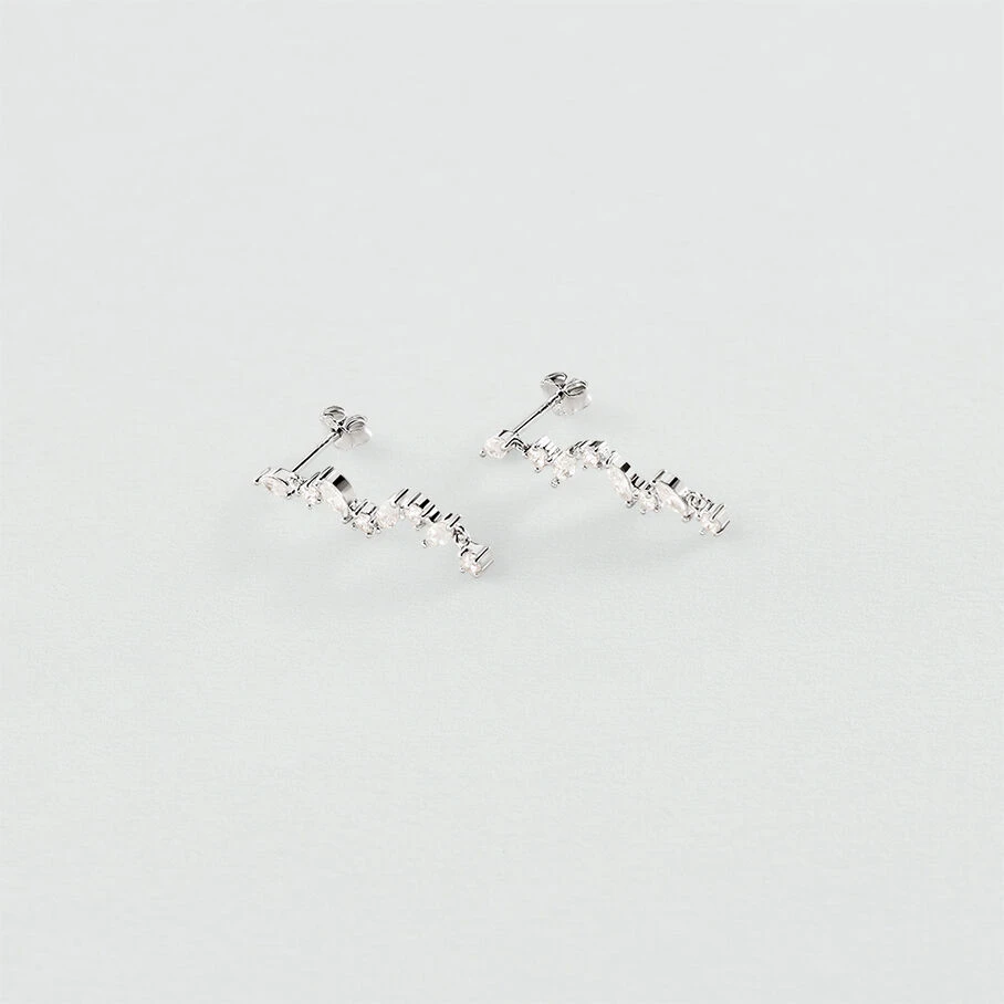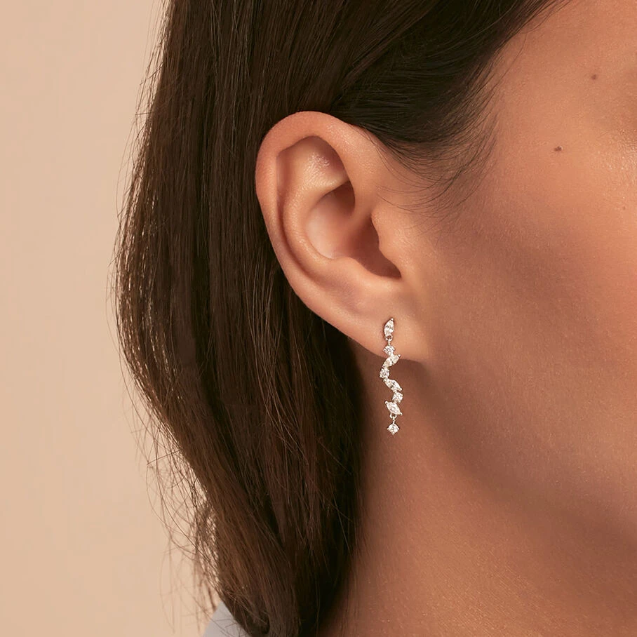 Boucles d’oreilles linéaires, en argent véritable, avec une rivière d’oxydes de zirconium et d’oxydes en forme marquise
