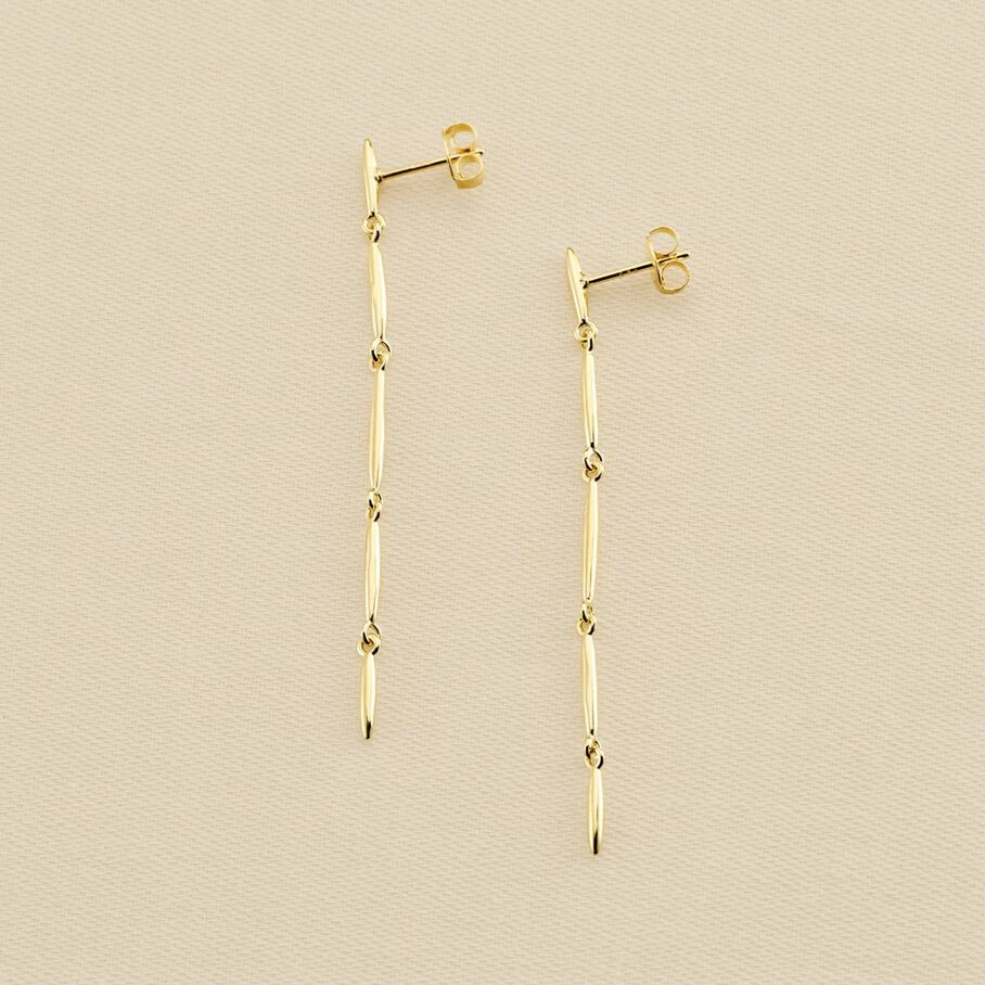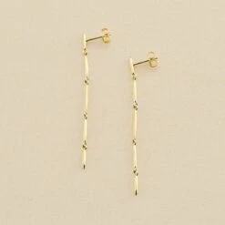Boucles d’oreilles linéaires, en argent véritable 925/1000 et dorées 750/1000, composées de cinq maillons au motif rayon de soleil.
