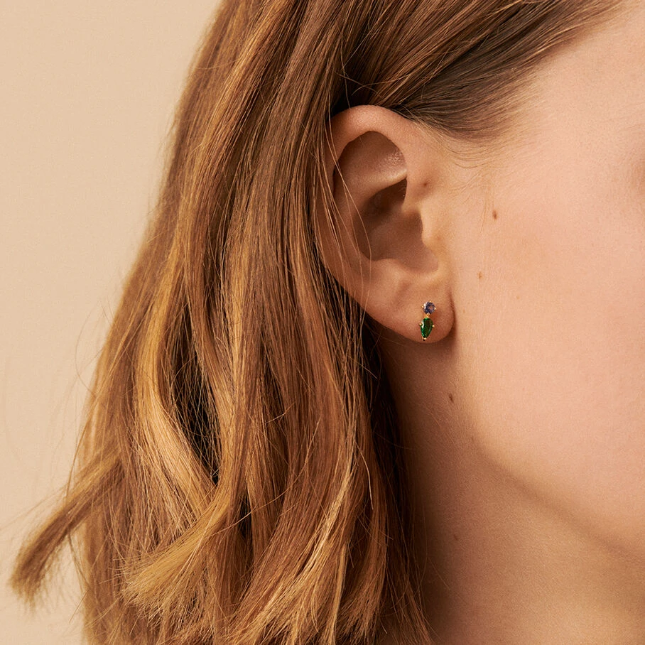 Boucles D’oreilles Puces ASTRE – Vert / Doré