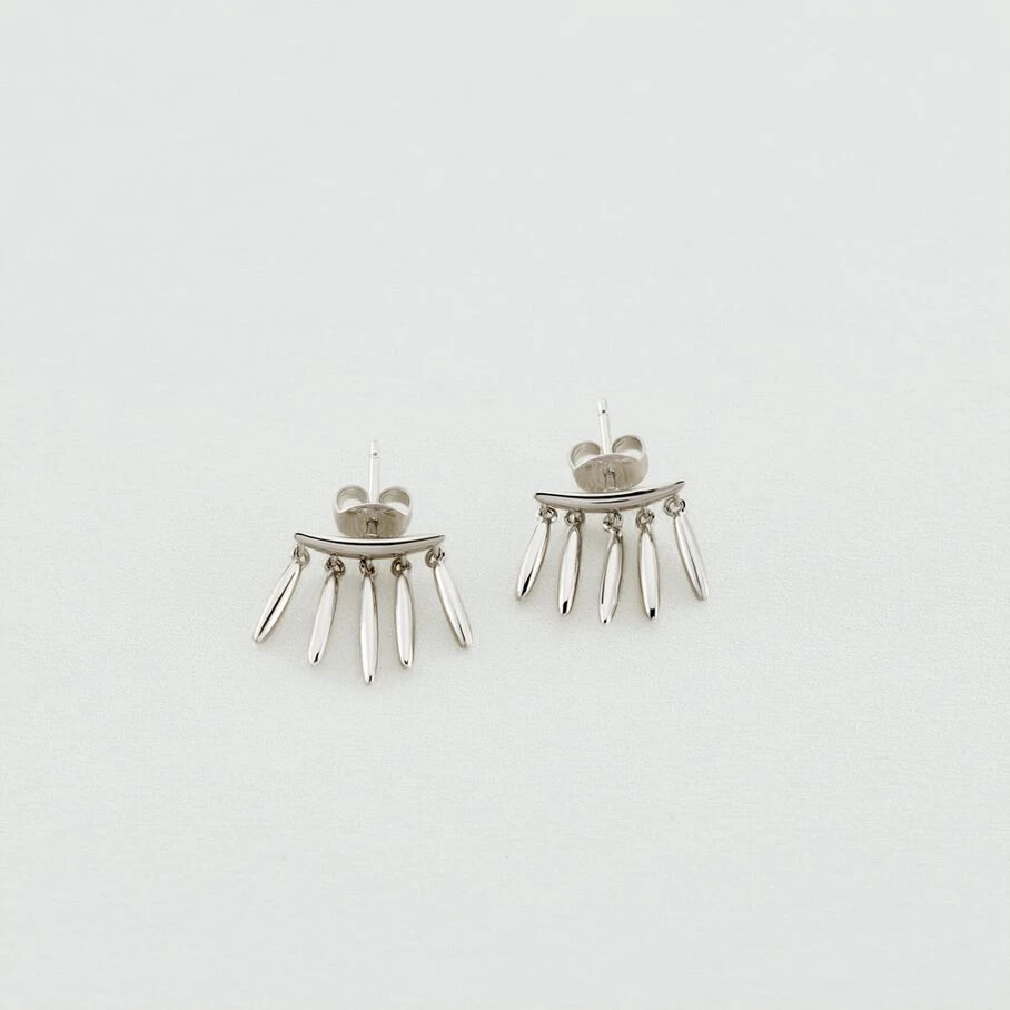 Boucles d’oreilles puces, en argent véritable 925/1000, ornées d’un rideau de pampilles au motif rayon de soleil.