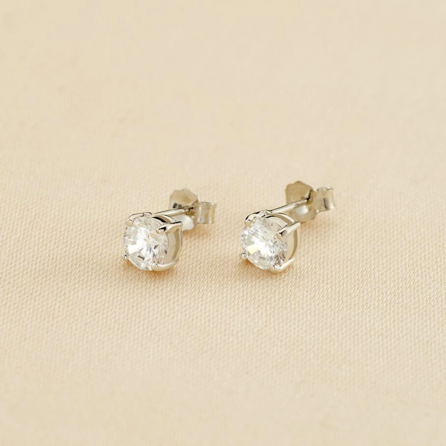 Boucles d’oreilles puces en argent véritable ornée d’oxydes de zirconium griffés de 4 mm