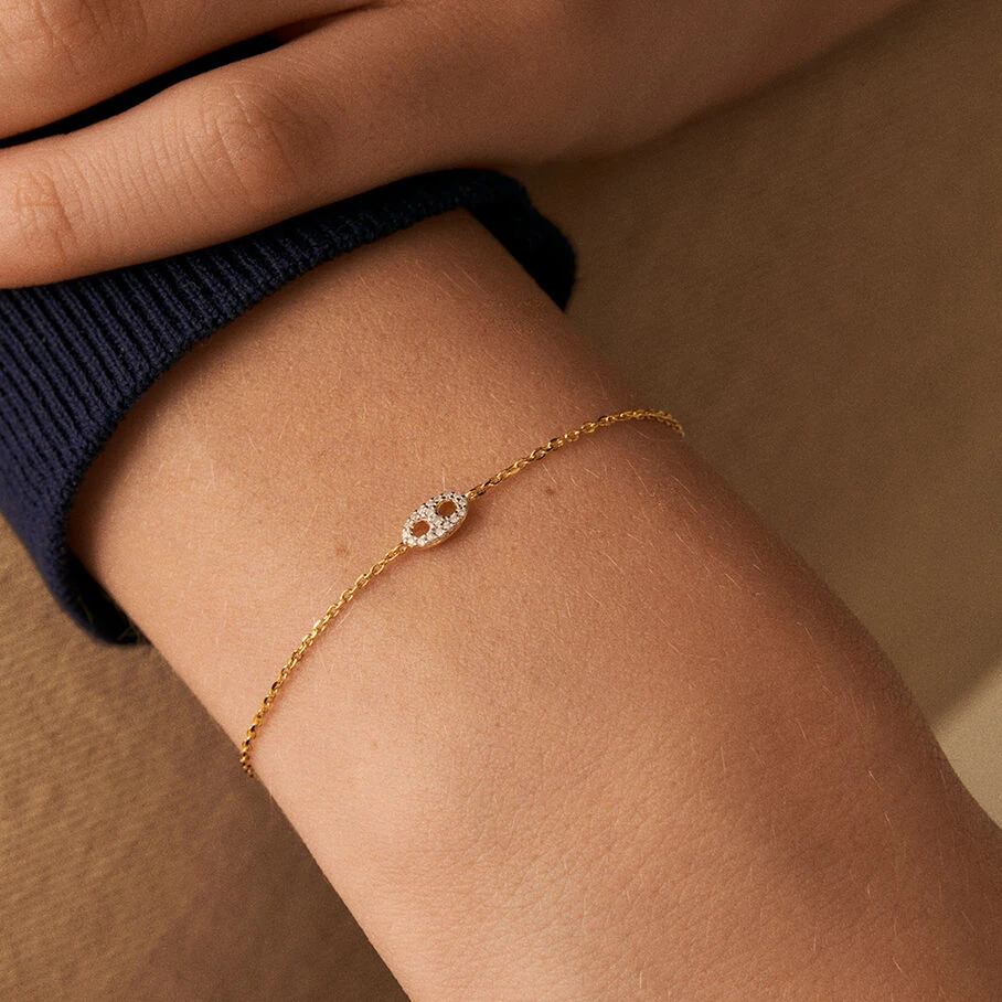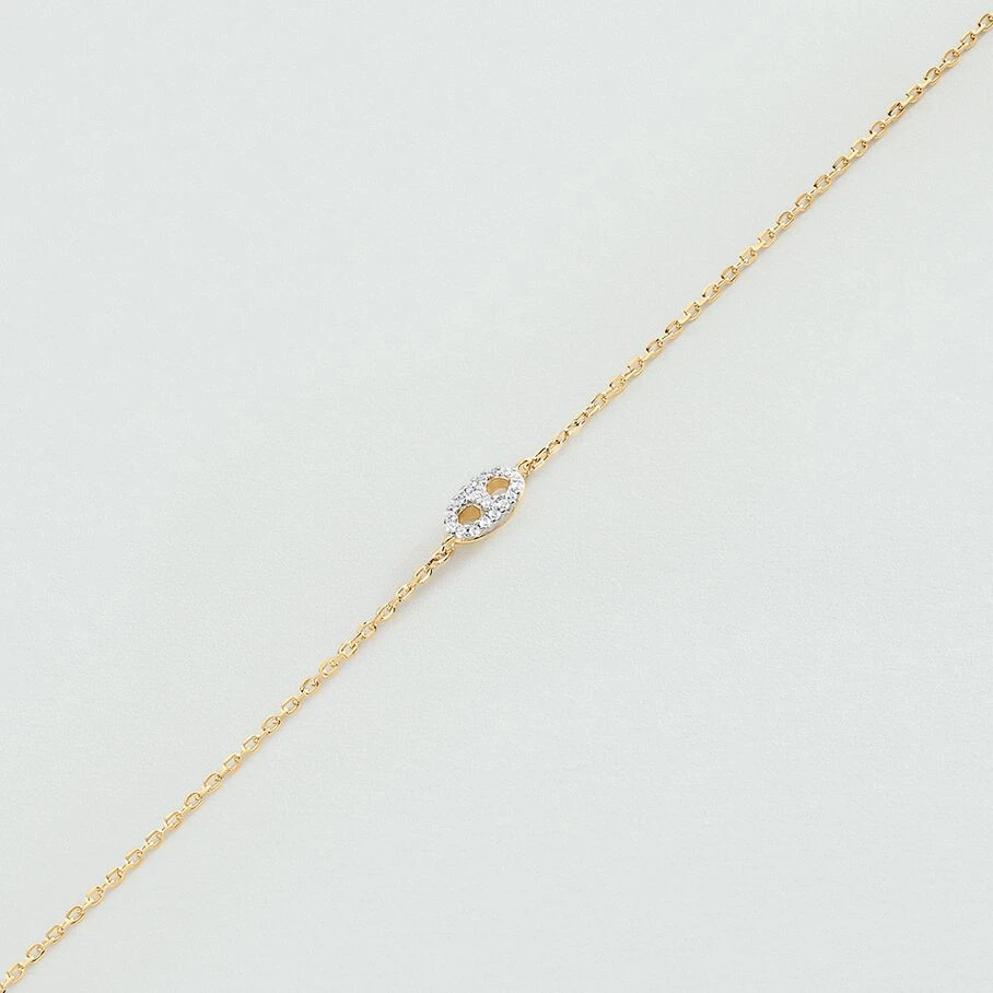 Bracelet, en argent véritable doré 750/1000, avec un grain de café pavé sur ruthénium, monté sur une fine chaine maille forçat