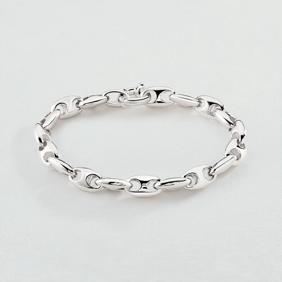 Bracelet souple en argent véritable, chaîne avec maillons en forme de grains de café.