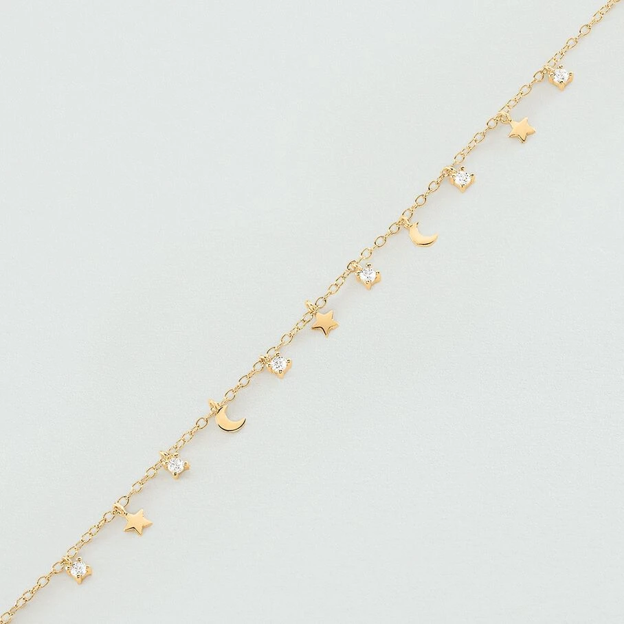 Bracelet, en argent véritable doré 750/1000, avec en pampille des petites lunes et des petites étoiles