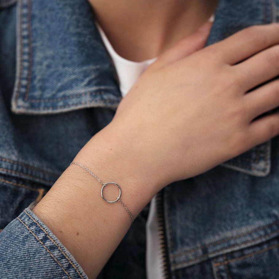 Bracelet, en argent véritable, avec un anneau évidé monté sur une chaine fine