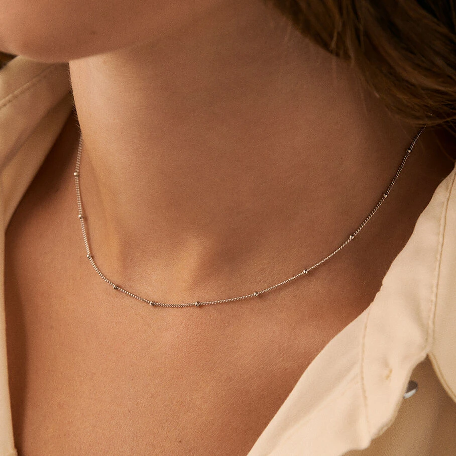 Chaîne courte en argent véritable, chaîne forçat et mini boules