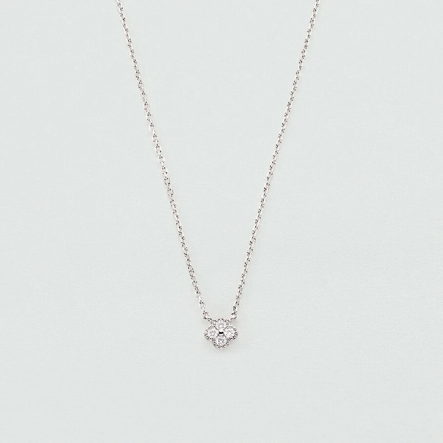 Collier, en argent véritable, avec un pendentif en forme de fleur dont les pétales sont des oxydes de zirconium et dont le pourtour est finement réalisé avec un graineti