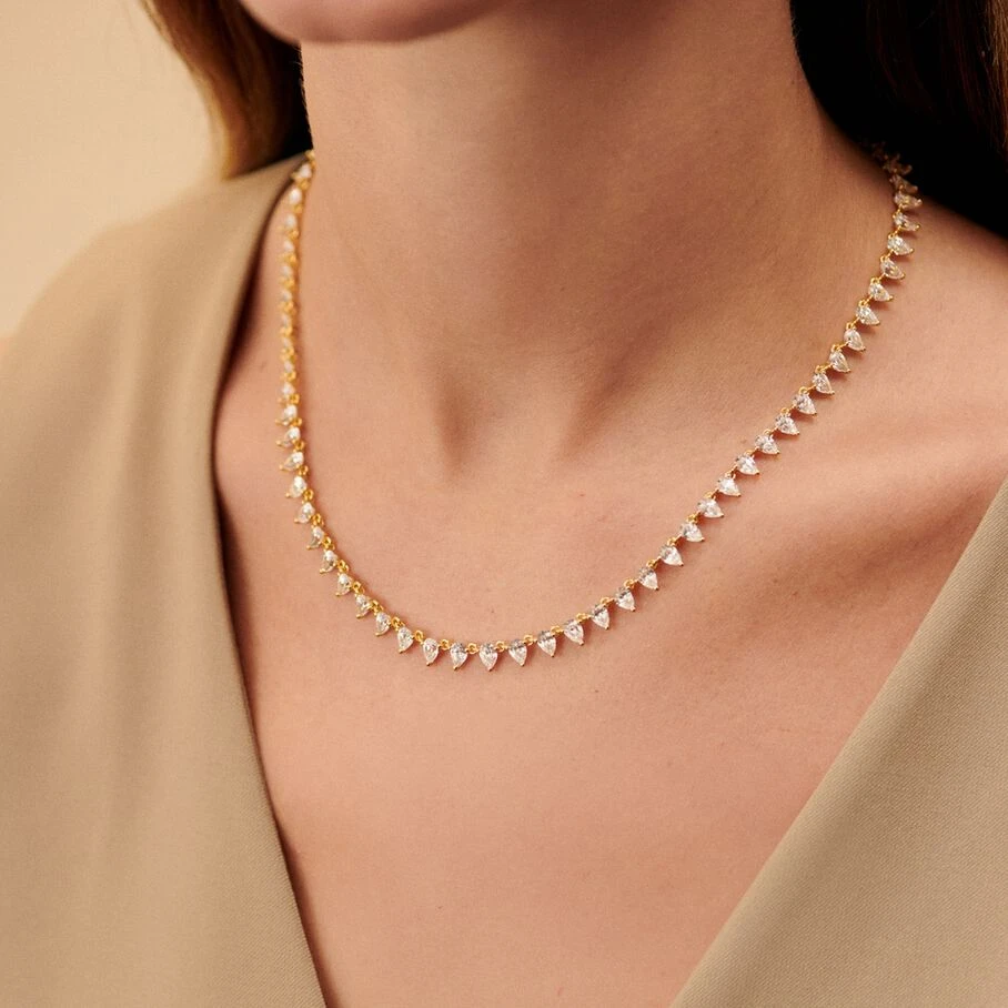 Collier court, en laiton doré 750/1000, entièrement sertis d’oxydes de zirconium de forme trillion