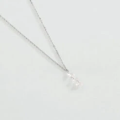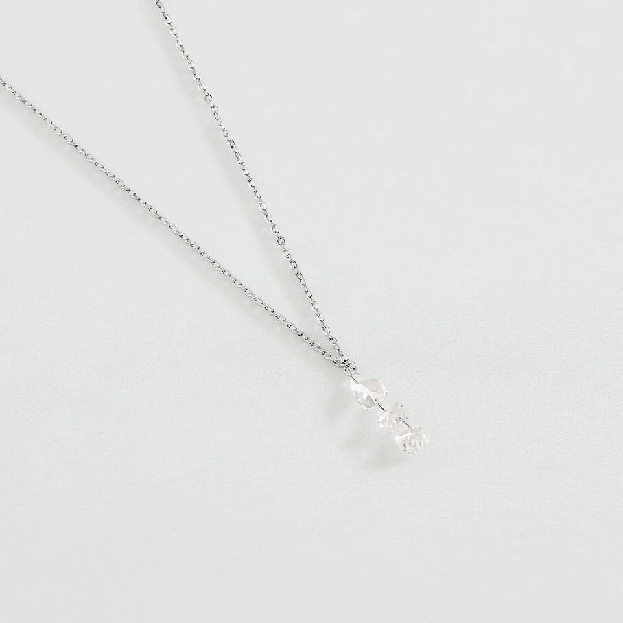 Collier court, en argent véritable, avec un pendentif composé d’une trilogie d’oxydes de zirconium percés en forme de poire, rond et coussin