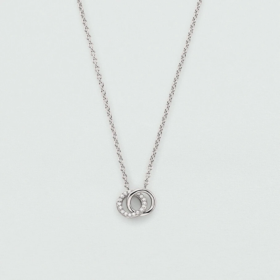 Collier court en argent véritable orné de deux anneaux entrelacés dont un pavé d’oxydes de zirconium