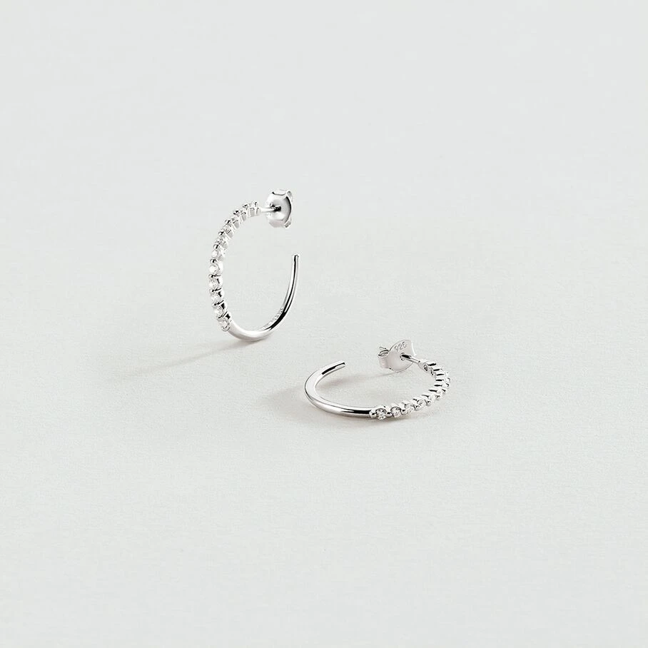 Créoles de 20mm de diamètre, en argent 925/1000, sur laquelle ont été sertis clos une série d’oxydes de zirconium