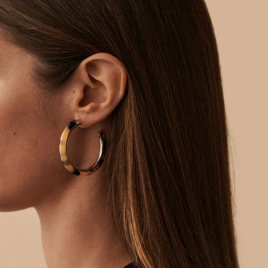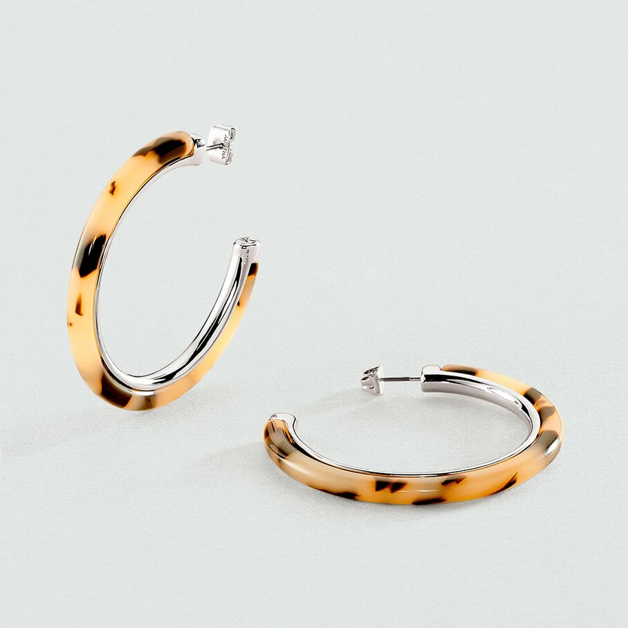 Boucles d’oreilles créoles de 45 mm de diamètre en laiton et acétate de couleur