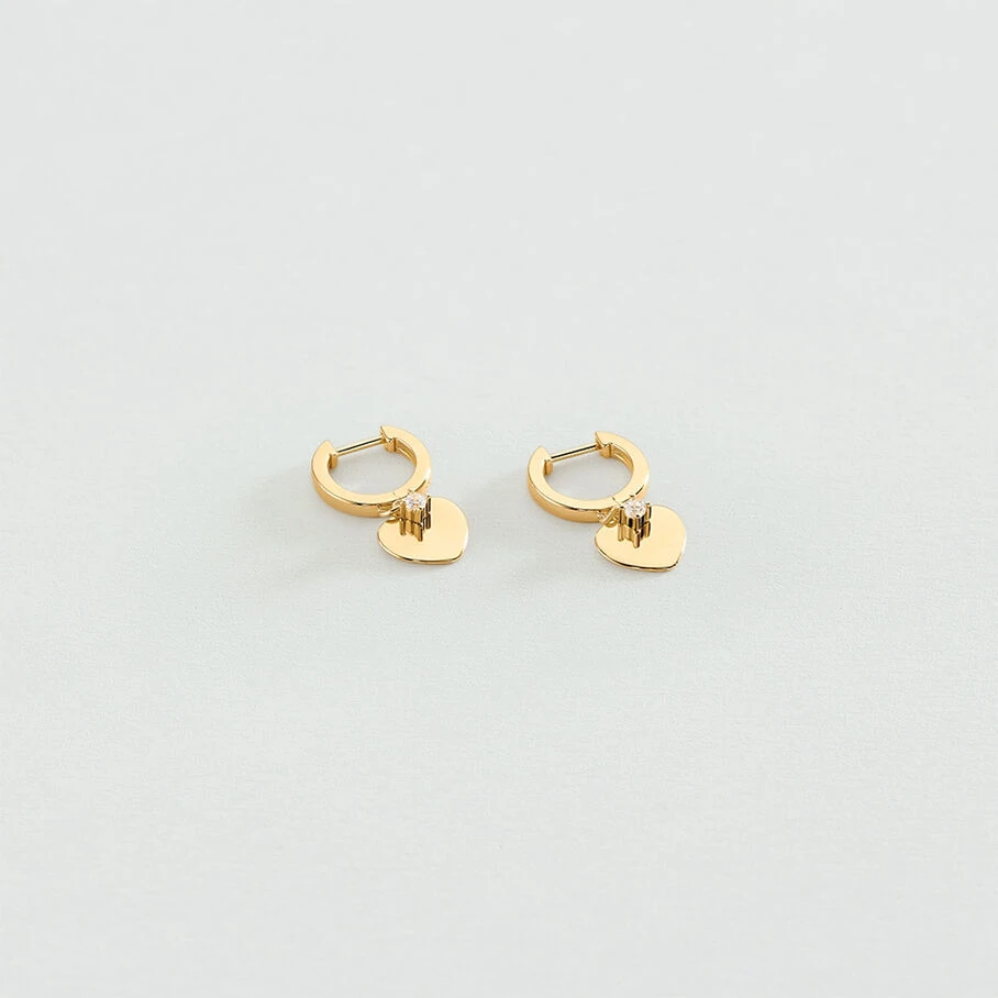 Huggies, en argent véritable doré à l’or fin, avec en breloque un pendentif coeur et un oxyde de zirconium