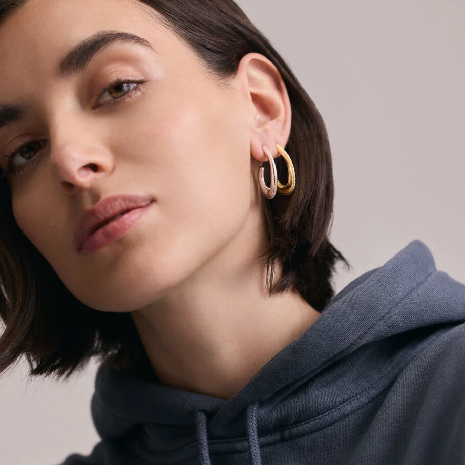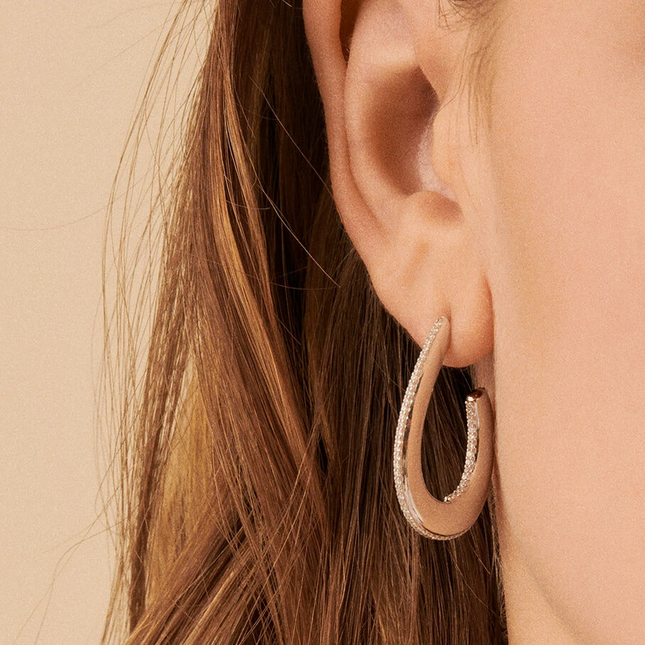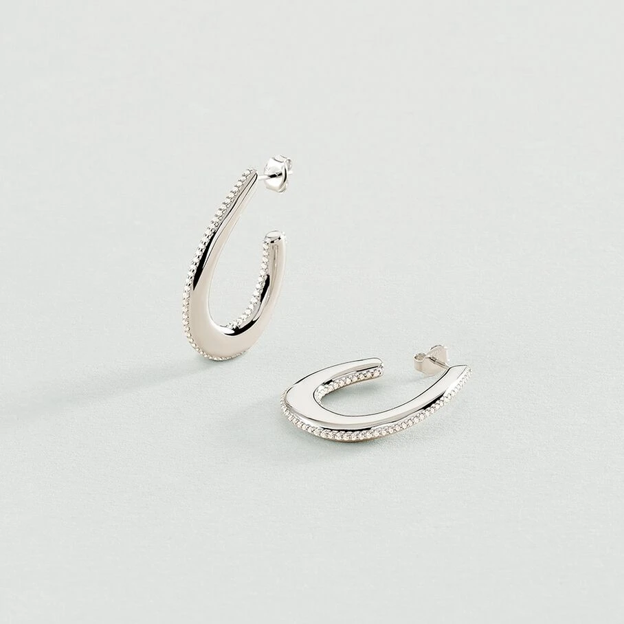Créoles, grand modèle, en argent 925/1000, représentant une demi goutte et dont la tranche est sertie d’oxydes de zirconium