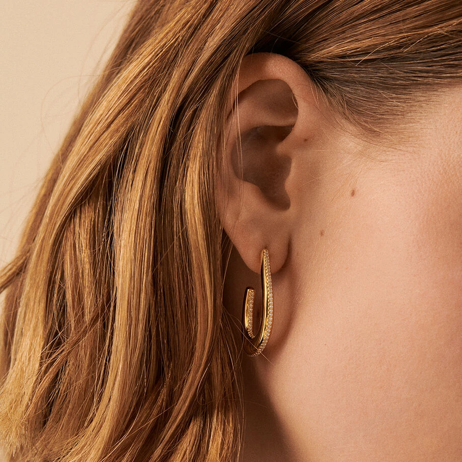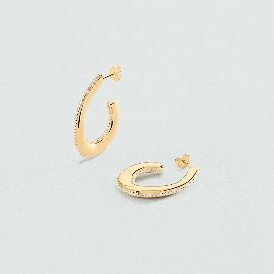 Créoles, grand modèle, en argent 925/1000 et dorées 750/1000, représentant une demi goutte et dont la tranche est sertie d’oxydes de zirconium