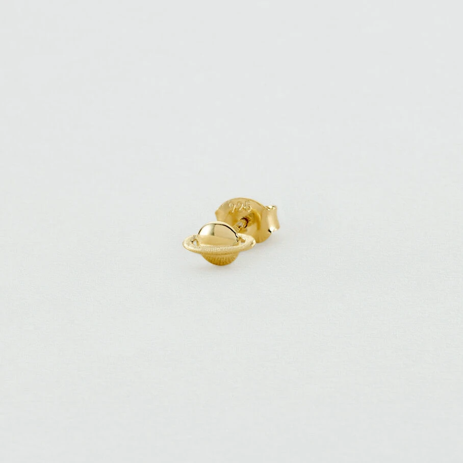 Boucle d’oreille puce, en argent doré 750/1000, planète saturne. A l’unité pour mieux les mixer et les accumuler.
